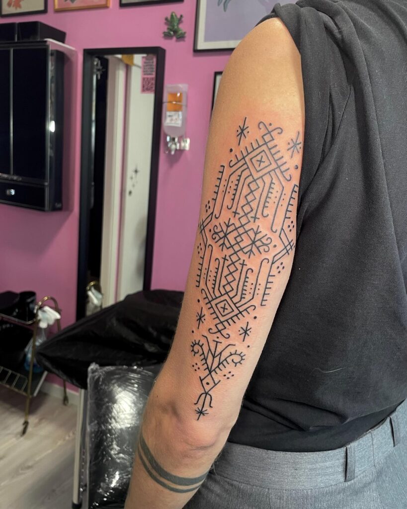 Geometriske tatoveringer er også i høj kurs i 2024. Disse tatoveringer bruger præcise linjer og former til at skabe komplekse mønstre og designs. Fra simple triangulære mønstre til intrikate mandalaer, geometriske tatoveringer giver en moderne og stilfuld æstetik.